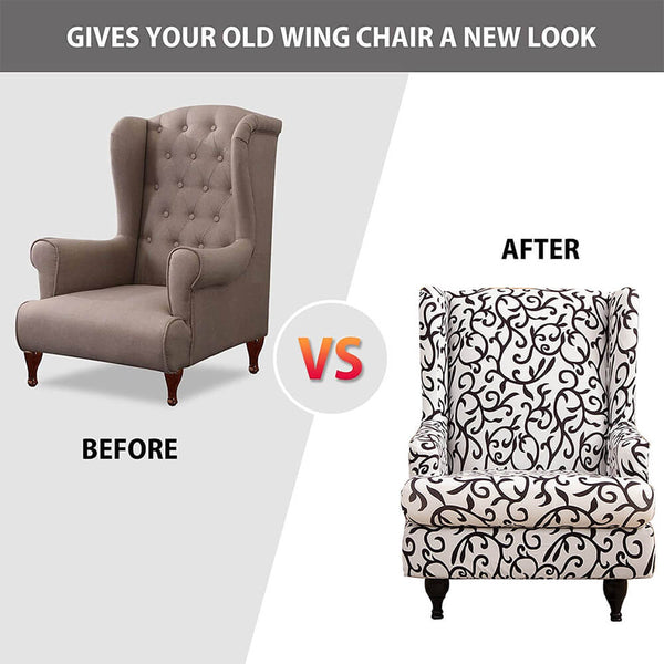 2 Pieces Wing back Chair Slipcover with T-cushion Cover Stretchy Sofa Covers WB0013