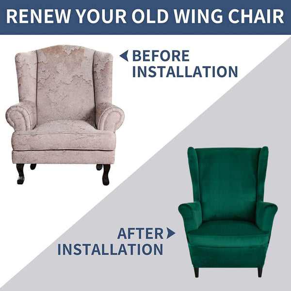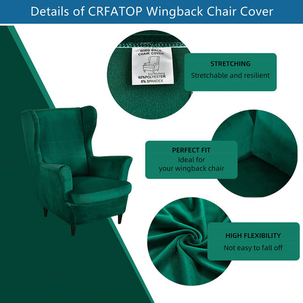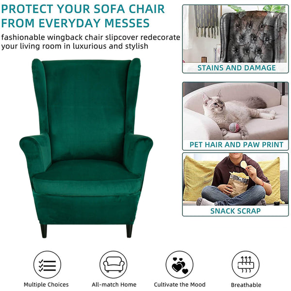 Green Velvet Wingback Chair Slipcover - 2 Pieces